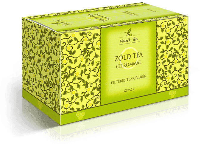MECSEK Zöld tea citrommal filteres A zöld tea a citrom kellemes aromájával a nap bármely szakában egyensúlyba hozza szervezetünk működését, aktivizálja védekezõ erõinket és oldja a mindennapok feszültségét. Kiszerelés: 20 x 2g Leírás: A zöld tea a citrom kellemes aromájával a nap bármely szakában egyensúlyba hozza szervezetünk működését, aktivizálja védekező er