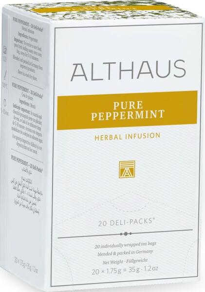 Althaus gyógytea - Tiszta borsmenta 35g Termék információ: Összetevők: borsmenta Tartalom: 20 zacskó tea x 1,75 g = 35 g