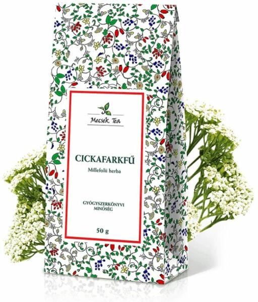 Mecsek Tea Cickafarkfű szálas monotea 50g Cickafarkfű (Millefolii herba) Gyógyszerkönyvi minőség Melyik nő ne hallott volna a cickafarkfű áldásos hatásáról?A cickafarkfű teája csökkenti a menstruációs vérzést és görcsöket . Kiváló gyulladáscsökkentő , alkalmazható hüvely- és méhgyulladásra, nyálkahártya- és fogínygyulladásra. Sebösszehúzó, sebgyógyító h