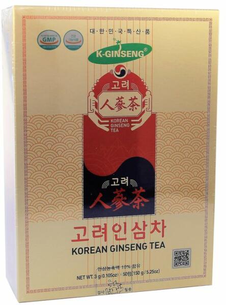 K-GINSENG Ginseng koreai tea 150g Finom instant granulált tea. Összetevők: glükóz, koreai fehér ginzeng kivonat 10%. Elkészítési útmutató : Tegye a tartalmát egy csészébe hideg vagy forró vízzel, és keverje fel, hogy a granulátum feloldódjon. Ízlés szerint adjunk hozzá például mézet.