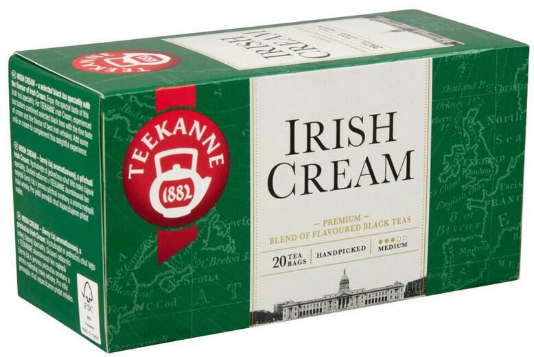 Irish Cream - irish Cream ízesítésű fekete tea különlegesség. Élvezze ennek az ír teakülönlegességnek egyedi ízét. A Teekanne Irish Cream" teát a teaszakértők a válogatott fekete teáknak, a tejszín ízének és a kitűnő ír whiskey aromájának elegyéből alkották. Kevés tej vagy tejszín hozzáadásával még pompásabb íz-hatás érhető el. Összetevők Fekete tea (90%