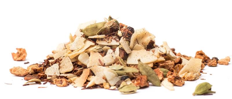 Télen nagyszerű hangulatjavítóa az Átmelegítő zimankó. A rooibos ízletes kombinációja gyömbérdarabkákkal, kókuszforgáccsal, fahéjjal, almával, kardamommal és mandulapehellyel tökéletes a hideg estékre és a lassabb reggelekre. Koffeinmentes, sok antioxidánssal.
