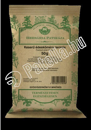 Keserű édeskömény termésAlkalmazható: emésztési zavarok, gyomorgörcs és felfúvódás esetén alkalmazható. Felső légúti megbetegedésekben hurutoldó és köptető hatású. Kiszerelés: 71502