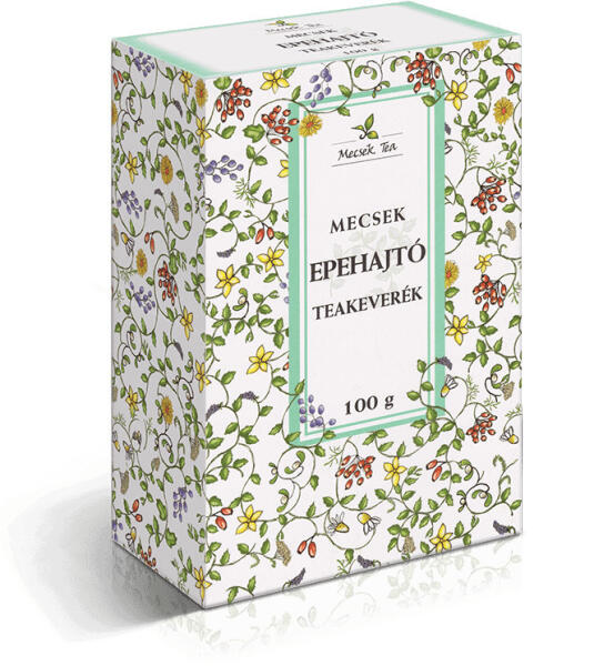 MECSEK Epehajtó tea 100 g Gyógyszernek nem minősülő gyógyhatású készítmény, melynek hatását – epekiválasztás serkentő, emésztést elősegítő, fertőtlenítő, gyulladáscsökkentő és enyhe görcsoldó – népgyógyászati tapasztalatok igazolják. Kiszerelés: 100 g Leírás: Epekőképződésre hajlamos egyéneknek, az epekiválasztás elégtelensége esetén alkalmazható