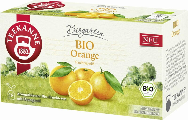 Bio-gyümölcstea keverék narancsolajjal Frissítő, narancsos íz Steviát tartalmaz 18 dupla kamrás filter