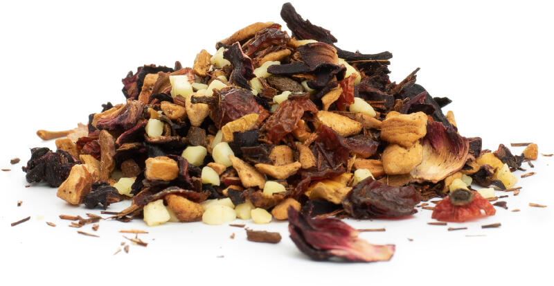 RAKTÁRRÓL AZONNAL! Összetétel: rooibos tea, almadarabok, természetes ízesítő, meggy, szilvadarabok, mályvavirág ELKÉSZÍTÉSI JAVASLAT - FEKETE TEÁK 2,5 dl forró vízhez egy-két teáskanál teafüvet adjunk ízlés szerint. Kannában való forrázás esetén plusz egy teáskanállal, majd 3-5 perc után szűrjük le. A ROOIBOS TEA Dél-Afrika szívében, Cederberg régió hegyekkel