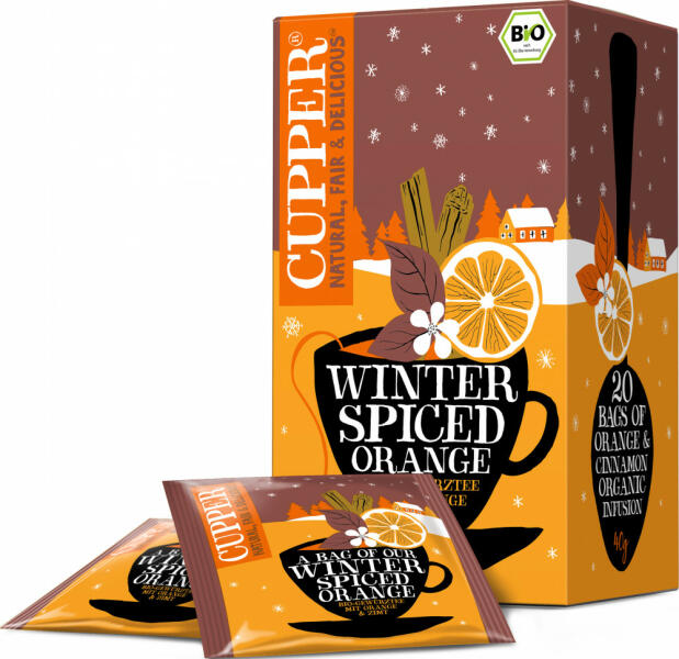 Téli esték fűszeres élményét nyújtja ez a fahéjas, narancsos ízesítésű bio alapanyagokból, 100% újrahasznosítható papírcsomagolásban rendelhető tea. Ünnepi időszakban ajándéknak és saját felhasználásra is ajánljuk. Koffeinmentes változat. Összetevők: Összetevők: Fahéj* (40%), mézbokor*, édesgyökér*, fehér hibiszkusz*, természetes narancs ízesítéssel*, nar