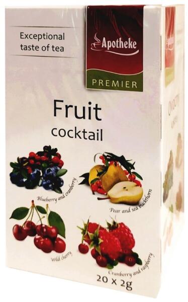 Fedezze fel az Apotheke Gyümölcskoktél vegyes gyümölcs teát! Négy különböző, ízletes gyümölcstea vár Önre egy dobozban. Élvezze melegen a hideg napokon, vagy hűtve frissítő italként a nyári melegben. Természetes összetevők, aromazáró csomagolás és változatos ízek garantálják a tökéletes teaélményt.
