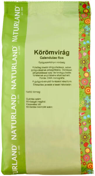 Naturland Körömvirág Tea 30 gKülsőleg kisebb bőrgyulladások, sebek gyógyulásának elősegítésére. Öblítéssel, gargalizálással száj- és torokgyulladás tüneteinek enyhítésére alkalmazható. Elkészítés és felhasználás A gyógynövényből forrázatot készítünk. Általános elkészítési javaslat Forrázatkészítés: Egy púpozott teáskanálnyi (kb. 2-3 g) gyógynö