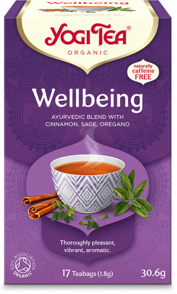 Wellbeing Biotermék. Ajurvédikus gyógynövény- és fűszerkeverék. Nem tartalmaz koffeint. MEDITERRÁN FŰSZERNÖVÉNYKERT, NAPOS, ELLAZÍTÓ A Jó közérzet tea aromás zsálya és melengető fahéj tartalma a zsálya tea fogyasztásának ősi mediterrán tradíciójára emlékeztet. Az indiai citromfű, a kardamom és az édesgyökér teljesíti ki ezt az egyedi teát. A tea felkelti benn