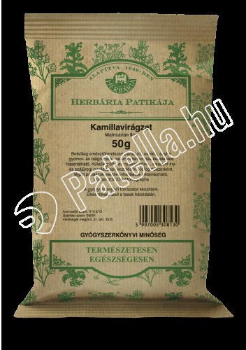 KamillavirágzatAlkalmazása:Belsőleg: emésztőrendszeri panaszok esetén, enyhe gyomor-és bélgörcsök, valamint felfúvódás kezelésére használható. Külsőleg: bőr-és nyálkahártya-, valamint íny és szájüregi gyulladások kezelésére öblögetőszerként, légúti panaszok esetén inhalálásra alkalmazható. Kiszerelés: 71105