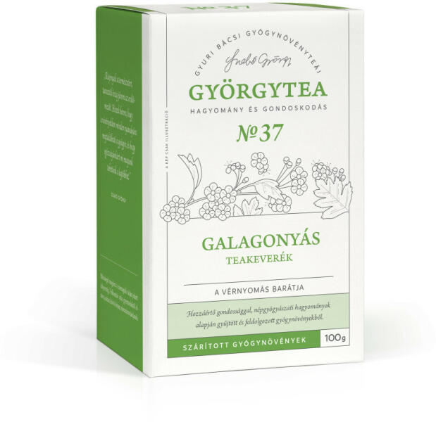 A Györgytea Galagonyás teakeverék a gyógynövények segítségével járul hozzá a vérnyomás csökkentéséhez. A Györgytea Galagonyás teakeverék a szív és a vese munkáját egyaránt segíti, így csökkenti a vérnyomást. Elkészítése: Egy csapott evőkanál (3 g) teafüvet 2,5 dl vízzel forrázzon le, 15 perc után szűrje le. Ne használjon fémszűrőt. Kiszerelés: 100g Györ
