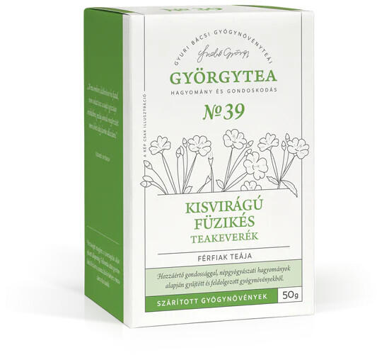 A Györgytea Kisvirágú füzikés teakeverék (Férfiak teája) természetes megoldás a prosztata egészségének támogatására . Ez az 50 g-os teakeverék kisvirágú füzikével segíthet enyhíteni a prosztata problémákat és támogatni a férfiak vizeletürítési folyamatait. Fogyaszd rendszeresen, és élvezd a gyógynövények erejét egészséged megőrzéséhez! 50 g szálas tea, kb