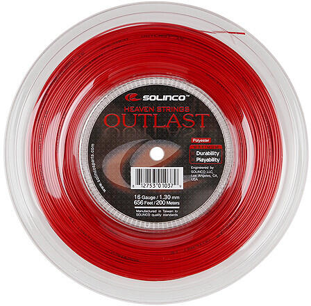 Solinco Outlast (200 m) - piros A Solinco Outlast elragadó piros színben. A Solinco Outlast egy rendkívül tartós kopoliészter teniszhúr. Precíziós technológiával készült, amely segít megőrizni tulajdonságait és teljesítményparamétereit hosszú ideig. A Solinco Outlast kiváló játszhatóságot is kínál. Ez az egyedülálló összetétel segít az erő és a spin biztosítás