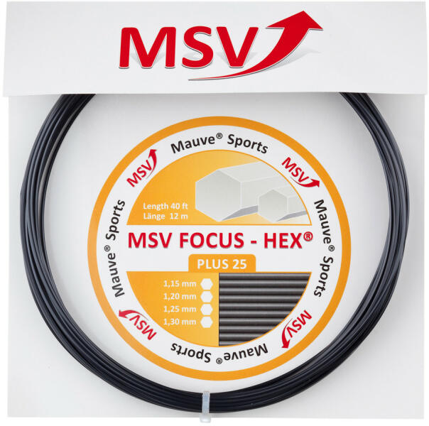 MSV Focus Hex Plus 25 (12 m) - Fekete Tenisz húr Merülj el a profi tenisz birodalmában az MSV Focus Hex Plus 25 fekete színű húrral. Ez a teniszhúr 25%-kal nagyobb rugalmasságot kínál, mint elődje, az MSV Focus Hex, és úgy tervezték, hogy optimális kényelmet, dinamikát, forgást és kontrollt biztosítson, hogy fokozza játékodat a pályán. Kiemelkedő kényelem és kontroll Az