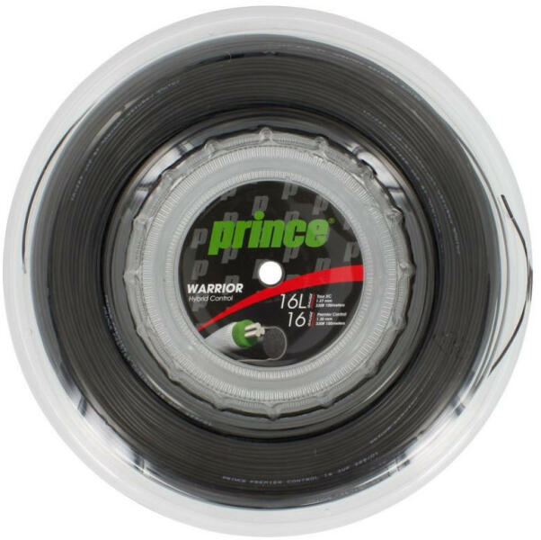 A Prince Warrior Hybrid Control 16L/16 (100 m/100 m) - Fekete - áttekintése Kompromisszumok nélküli irányítás és érzékelés Az irányíthatóság és az érintés közötti tökéletes egyensúlyt elérve a Prince Warrior Hybrid Control 16L/16 teniszhúr ideális választás azoknak, akiknek fontos a precíz ütéskészítés. Mesterien megtervezett, minden ütésnél egyenletes érzetet