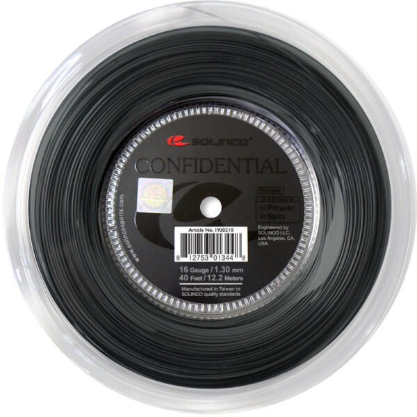 Solinco Confidential (200 m) - Szürke A Solinco Confidential a kontroll, az ultra precizitás, a pörgés és az erő egyedülálló keveréke. A Solinco Confidential egyik kiemelkedő tulajdonsága a kivételes tartósság. A húr megtartja a feszültséget akkor is, ha keményen játszol. A szögletes és éles profil a maximális spinhez lett kialakítva. Az erő és a kényelem közötti egye