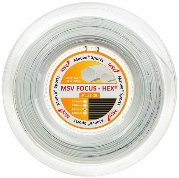MSV Focus Hex Plus 25 (200 m) - Fehér: Tenisz húr: A végső tenisz húr Nyissa ki a végső potenciált az MSV Focus Hex Plus 25 teniszhúrral - most lenyűgöző fehér színben. A kiváló rugalmasságáról híres, amely akár 25%-kal nagyobb, mint az MSV Focus Hex, ez a csúcskategóriás teniszhúr kifejezetten azoknak az erős teniszezőknek készült, akiknek extra előnyre van szükség