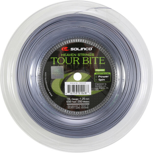 Teniszütő húrozása - 12 m a pozícionálás ellenőrzéséhez és pontosságához - a labda forgására (spin) - a labda megérzéséhez Fűzés típusa: monofil szál Szín: szürke Anyag: poliészter A húr alakja:: kerek