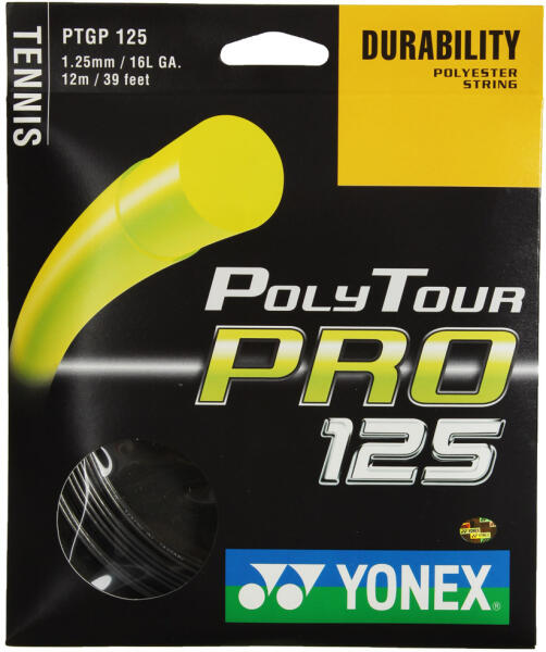 Sokoldalú Yonex Poly Tour Pro 125 grafit teniszhúr (12 m) A Yonex Poly Tour Pro 125 tartós teniszhúr, amelyet úgy terveztek, hogy segítse az irányítás és a kényelem egyensúlyát a legnagyobb kihívást jelentő mérkőzések során, és amelyet a világ legjobb profi játékosai megbíznak és elismerik. A teniszcsillag, Maria Kirilenko által választott, nagy teljesítményű kopoli