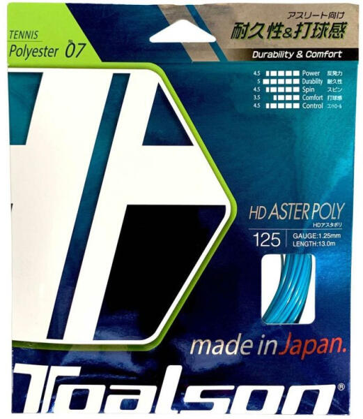 A Toalson HD Aster Poly (13 m) - Kék teniszpálya - Kibontakoztassa teniszpotenciálját a Toalson HD Aster Poly-val. Fokozd a játékodat a Toalson HD Aster Poly-val, a piac egyik legjobb teniszhúrjával. Az irányíthatóság, a kényelem, a feszültségtartás és a rugalmasság lenyűgöző kombinációjával úgy tervezték, hogy még a legigényesebb játékosok is elégedettek legyenek ve