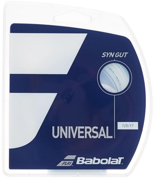 Babolat Synthetic Gut Universal (12 m) - Tenisz húr Merülj el a profi tenisz szférában a Babolat Synthetic Gut Universal teniszhúrral. Ez a haladó játékosok és amatőrök számára egyaránt készített modell kivételes kényelmet garantál a játék során. Bőséges tulajdonságaival és kiváló minőségével, remek áron, ideális választás a hibrid konfigurációkban.