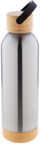 Rozsdamentes acélból készült duplafalú termosz, bambusz hordozható fedéllel és talppal, 500 ml.