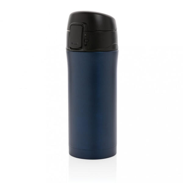 Elegáns metál fényű duplafalú vákuumbögrére rozsdamentes acélból így itala akár 5 órán keresztül is meleg marad és 15 órán keresztül pedig hideg. A termék teteje könnyen tisztítható, akár mosogatógépben is, emellett pedig kiválóan zár ezáltal teljesen szivárgásmentes. A különleges kialakításnak köszönhetően egy kézzel is kényelmesen használható illetve az