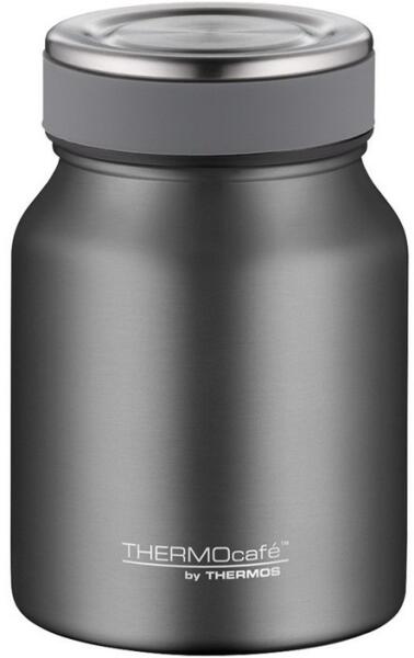 Thermocafé by Thermos ételtermosz - 500 ml - szürke500 ml-es dupla falú, vákuumszigetelt rozsdamentes acélból készült, csavaros tetejű ételtermosz. Hideg és meleg ételekhez egyaránt alkalmas. A könnyű nyitás érdekében, csúszásmentes szilikon gyűrűvel van ellátva a kupak. Az ételtermosz tulajdonságai: Űrtartalom: 500 mlMagasság: 142 mmÁtmérő: 96 mmA torok átmérője:
