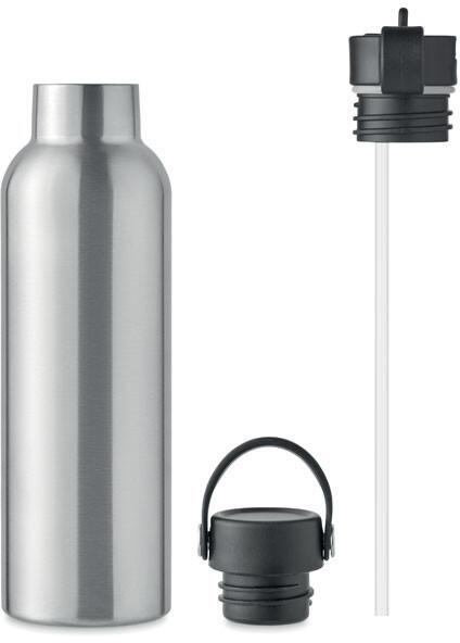 Duplafalú, újrahasznosított rozsdamentes acél (90% újrahasznosított rozsdamentes acél, 10% rozsdamentes acél) termoszpalack szivárgásmentes csavaros kupakkal és további cserélhető beépített szívószálas kupakkal. Űrtartalom: 700 ml.