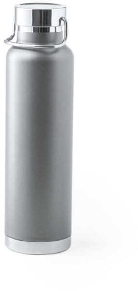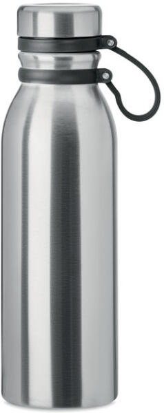 Duplafalú rozsdamentes acél termosz, a könnyű szállítást biztosító szilikon pánttal. BPA mentes. Űrtartalom: 600 ml. Szivárgásmentes.