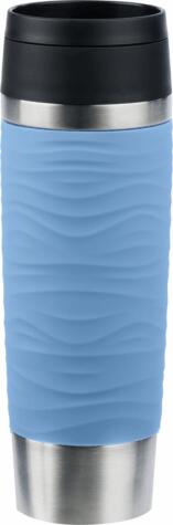 Duplafalú rozsdamentes acél termoszpalack, a fedélen kis ivókupakkal és hordozófogantyúval. Űrtartalom: 500 ml.