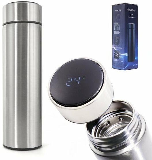 Elegáns termosz LED kijelzővel, mely mutatja a benne lévő ital hőmérsékletét! A kijelzőnek köszönhetően szabályozható az ital hőmérséklete. A túl forró tea már nem fog meglepni! A hőmérsékleti információ a fedőn található. A kijelző érintéssel aktiválható. Űrtartalom: 500 ml. Adományozási szöveg gravírozásának lehetősége.