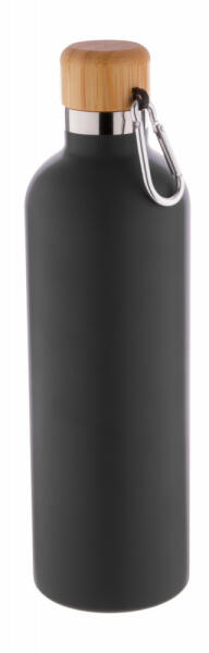 Duplafalú, rozsdamentes acélból készült termosz bambusz kupakkal és karabinerrel, 500 ml.