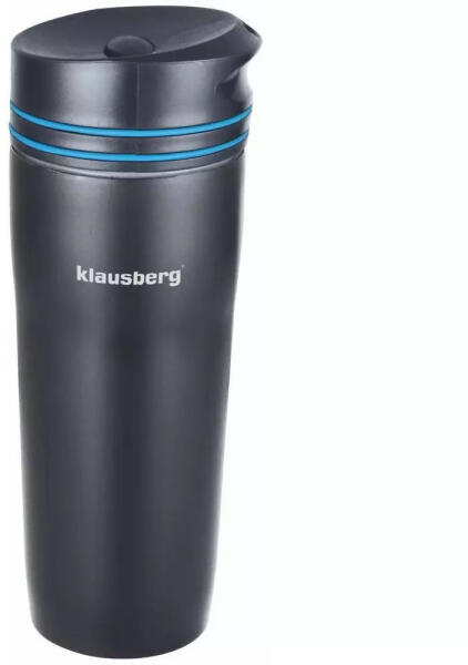 Klausberg utazó bögre / termosz kiváló minőségű rozsdamentes acélból. Fekete szín kék dekorációs gyűrűvel. Duplafalas hőzáró kivitel, ami megtartja az ital hőmérsékletét, emellett a külső fal nem forrósodik át. Ellenáll a mechanikai sérüléseknek. Menetes dupla falú tető, gomb segítségével nyitható-zárható. Kapacitás: 380 ml