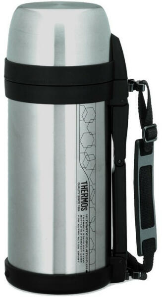 Univerzális nemesacél vákuum szigetelt kulacs 2l űrtartalommal ételre és italra két bögrével. A Thermos FDH univerzális nemesacél vákuum szigetelt kulacs kültéri környezetbe. A termosz univerzális tulajdonságai a széles toroknak, két bögrének, fogónak és lekacpsolható szíjnak köszönhetőek. A termosz egyaránt használható italra és ételre. A termosz univerzális tula