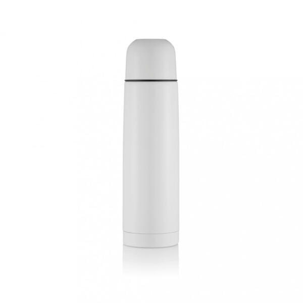 Rozsdamentes acél, duplafalú, vákumos termosz 0,5 l űrtartalommal.