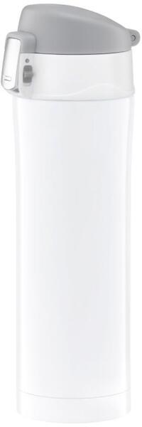 Rozsdamentes acél vákuumszigetelt bögre, nyomógombos zárással. A könnyű és kompakt termobögre a legtöbb autós tartóba illeszkedik. A termobögre lezárt állapotban vízálló. Megbízhatóan nyílik és záródik egyetlen gombnyomással. A kupakból a teljes kerülete körül lehet inni – nem szükséges nyílást keresni az ital megivásához. A levehető kupak higiénikusan mosog
