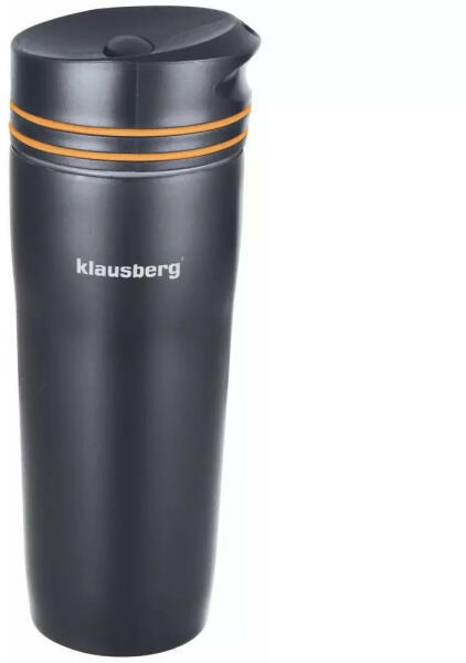 Klausberg utazó bögre / termosz kiváló minőségű rozsdamentes acélból. Fekete szín narancssárga dekorációs gyűrűvel. Duplafalas hőzáró kivitel, ami megtartja az ital hőmérsékletét, emellett a külső fal nem forrósodik át. Ellenáll a mechanikai sérüléseknek. Menetes dupla falú tető, gomb segítségével nyitható-zárható. Kapacitás: 380 ml