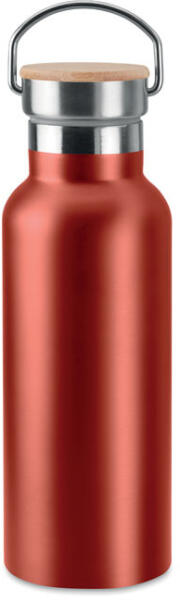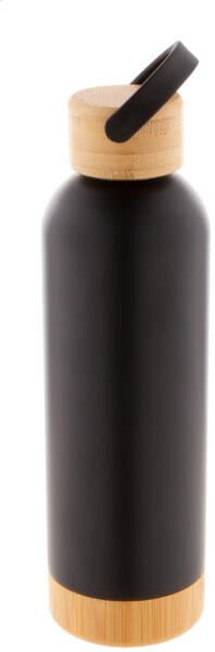 Rozsdamentes acélból készült duplafalú termosz, bambusz hordozható fedéllel és talppal, 500 ml.
