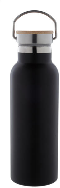 Duplafalú, rozsdamentes acélból készült termosz bambusz kupakkal és karabinerrel, 500 ml.