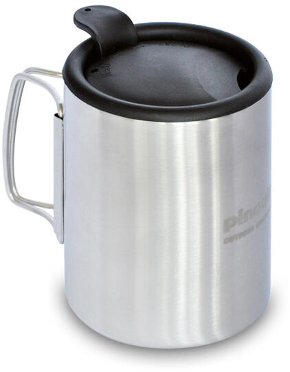 Dupla falú, 0,3 literes termo bögre rozsdamentes acélból, műanyag fedéllel. Összecsukható fogantyúi rozsdamentes acélhuzalból készültek. A duplafalú kialakítás, ahol a bögre falaiba vákuumot zárnak, jó hőszigetelő tulajdonságokat és ugyanakkor nagy tartósságot biztosít. Súly: 150 gAnyag: