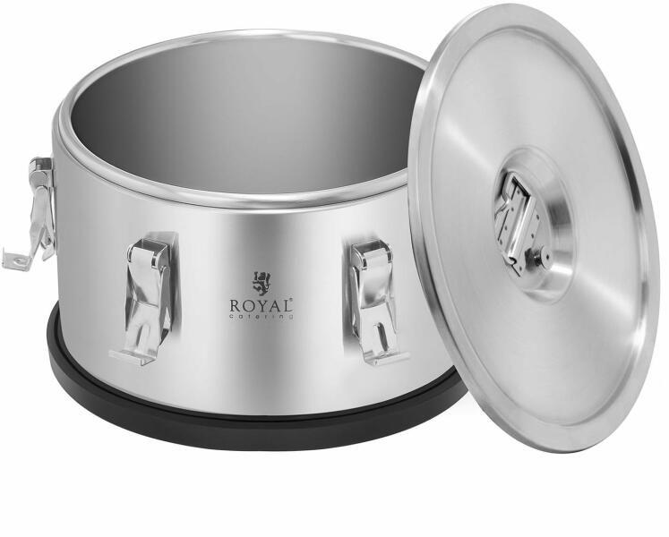A Royal Catering RCTP10 hőtartó edényével ételek és italok melegen való szállítása gond nélkül megoldható. A thermo konténerek speciálisan a gasztronómiára lettek kialakítva, így éttermekben és szállodákban tökéletesen bevethető, de házhoz szállító cégek is használhatják gond nélkül. Amennyiben a funkcionalitás, tartósság, illetve az igényes design önnek fon
