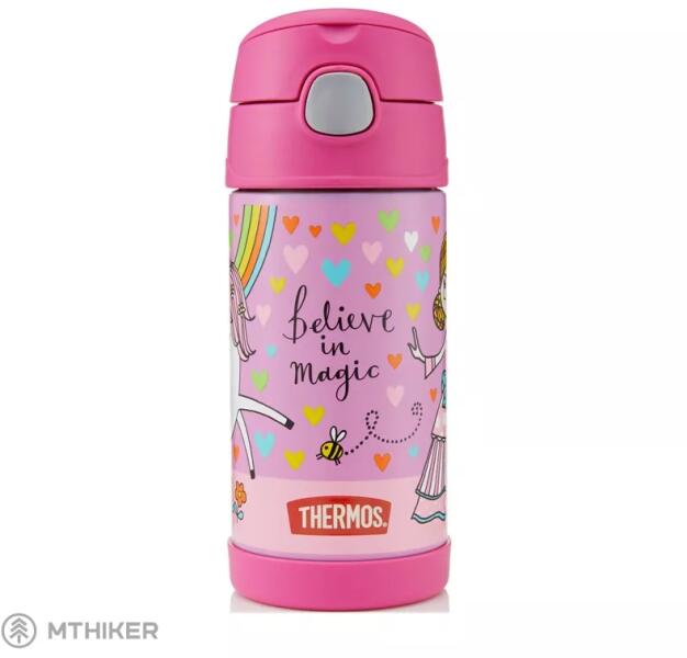 Rozsdamentes acél vákuumszigetelt palack szívószállal, 355 ml térfogattal - unikornis kivitel. A termosz paraméterei Űrtartalom: 355 ml Magasság: 180 mm Átmérő: 70 mm A nyak átmérője: 50 mm Súly: 220 g Melegen tartja: Forró (forrásban lévő) italokhoz nem alkalmas - forrázás előfordulhat Melegen tart: 8 óra Hidegen tart: 12 óra Összegzés Ideális iskolás gyerekeknek és