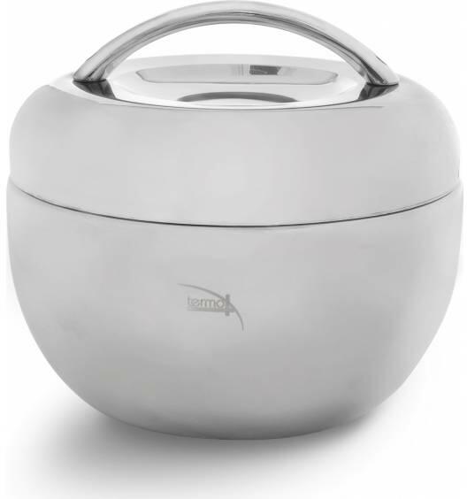 A duplafalú, rozsdamentes acélból készült termomix hosszú ideig állandó hőmérsékleten tartja a beletett ételek hőmérsékletét. .