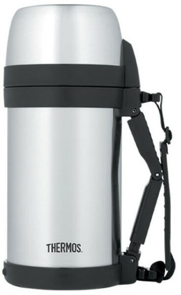 Univerzális nemesacél vákuum szigetelt kulacs 1,4 l űrtartalommal ételre és italra két bögrével. A Thermos FDH univerzális nemesacél vákuum szigetelt kulacs kültéri környezetbe. A termosz univerzális tulajdonságai a széles toroknak, két bögrének, fogónak és lekacpsolható szíjnak köszönhetőek. A termosz egyaránt használható italra és ételre. A termosz univerzális t