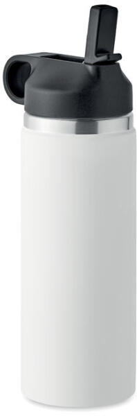 Duplafalú, újrahasznosított rozsdamentes acél (90% újrahasznosított rozsdamentes acél, 10% rozsdamentes acél) termoszpalack, PP fogantyús és beépített szívószálas fedéllel. Szivárgásmentes. Űrtartalom: 500 ml.
