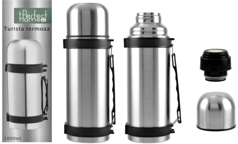 Anyaga: rozsdamentes acél; műanyag Doboz mérete: 31*10*10 cm Mérete: 30 cm magas; ~9,5 cm átmérő Űrtartalma: 1000 ml Bruttó súlya: 680 g Nettó súlya: 600 g Tisztítása: Semleges folyékony mosogatószerrel mossa el! Kerülje a karcosodást okozó szerek és eszközök használatát! Használata: Forró és hideg ital tárolására egyaránt alkalmas. A belső zárókupakon lévő gomb