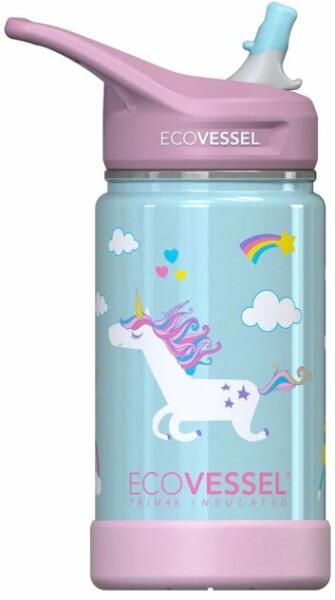 Az EcoVessel The Frost gyerek kulacsok rozsdamentes acélból készülnek és 36 órán át frissen tartják gyermeked italát!A gyerekek szivesen kortyolgatnak a The FROST kulacsukból, mig a szülők tudják, hogy a viz, gyümölcslé, kakaó vagy csemetéjük bármilyen kedvenc itala órákig hideg és friss marad a termoszban. Ez a szines kulacs belső szilikon szivószállal rendelkezik, igy