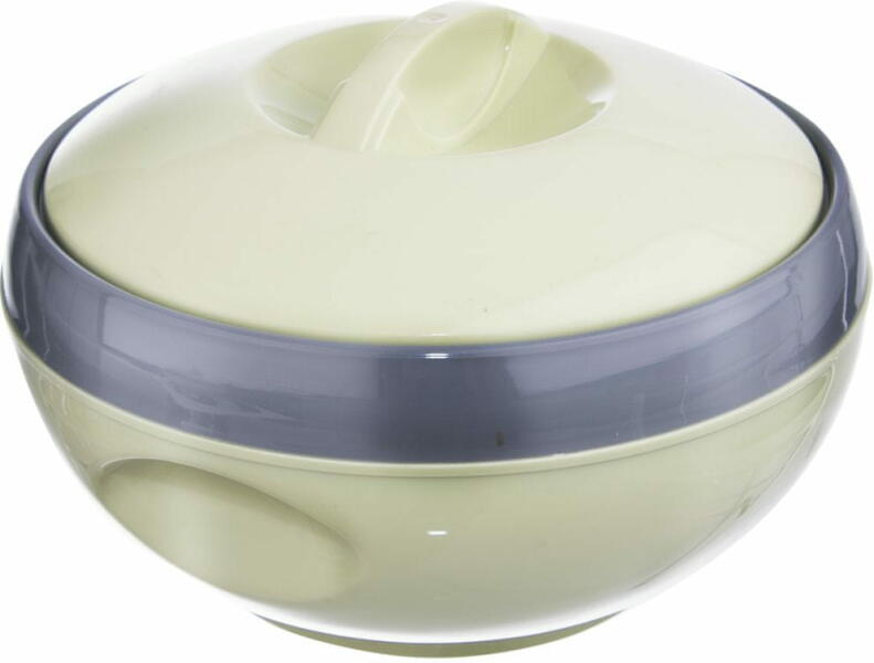 1,5 l űrtartalmú thermo tál műanyag tokban, rozsdamentes acél belső résszel. Hosszan tartó ideig melegen vagy hidegen tartja a belehelyezett ételt. A műanyag thermo fedél elforgatásával egyszerűen használható.